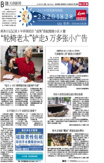 李奶奶告訴記者,6年前,因?yàn)楣晒穷^骨折做了手術(shù),從此走路緩慢,連站起來都晃晃悠悠,出門幾乎就靠輪椅,即使走路也是扶著輪椅小步往前挪。3年前,民警在小區(qū)車棚處張貼了海報(bào),號召居民美化環(huán)境,清除小廣告。可自從海報(bào)貼出,半個(gè)多月過去了,也不見小區(qū)內(nèi)的小廣告減少,李奶奶自告奮勇,到居委會報(bào)名當(dāng)了一名清理小廣告的志愿者。“天天上午兩小時(shí),下午一小時(shí),把小區(qū)和附近街道轉(zhuǎn)一圈,只要夠得著的就用鏟子清。”李奶奶說。